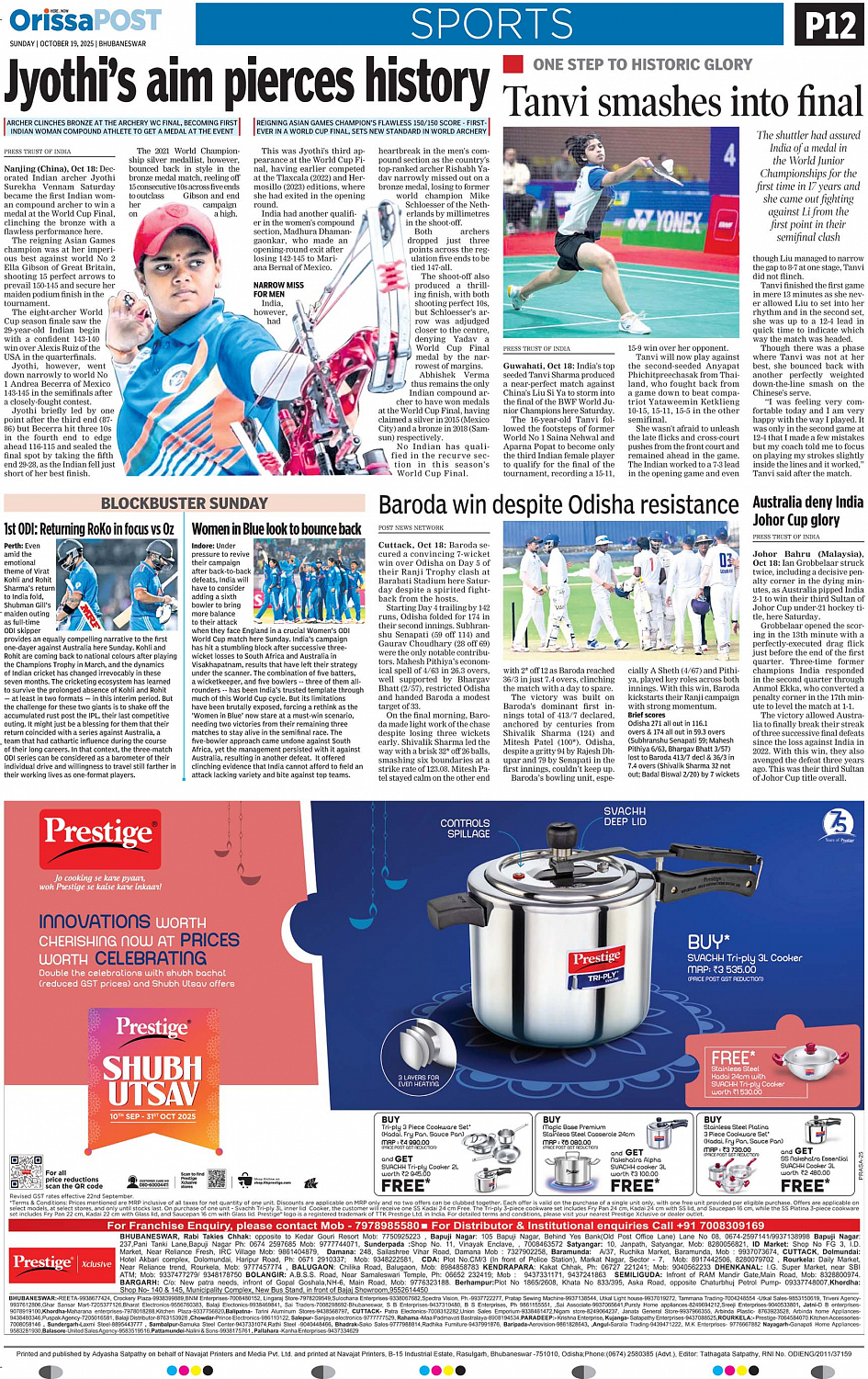 OrissaPOST Page: 12 October 19, 2025 << First << 12 >> Last >> Page 1Page 2Page 3Page 4Page 5Page 6Page 7Page 8Page 9Page 10Page 11Page 12 × OrissaPOST 123456789101112 Full PDF << First << 12 >> Last >> 123456789101112