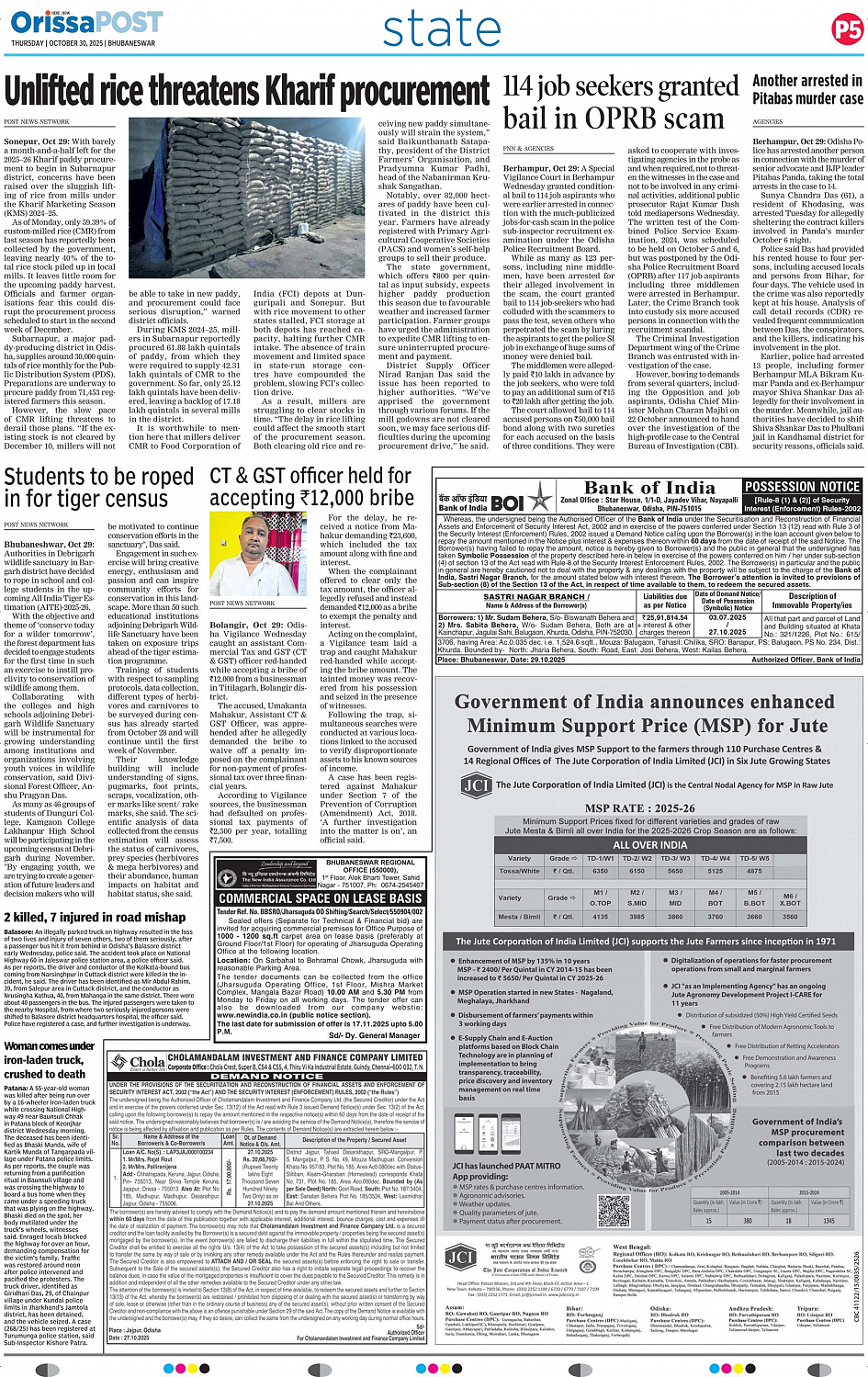 OrissaPOST Page: 5 October 30, 2025 << First << 5 >> Last >> Page 1Page 2Page 3Page 4Page 5Page 6Page 7Page 8Page 9Page 10Page 11Page 12 × OrissaPOST 123456789101112 Full PDF << First << 5 >> Last >> 123456789101112